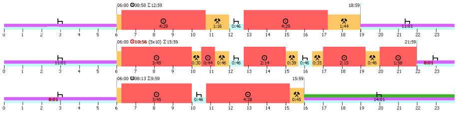 denně, plus nakládka, vykládka a bezpečnostní přestávky.
